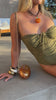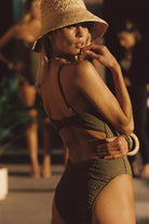 Living for the summer drama in the Estrella Olive Cheeky One Piece. With textured shell print and flirty tie-front detail the Estrella has the perfect amount of support with an underwired bust and the cheeky fit.