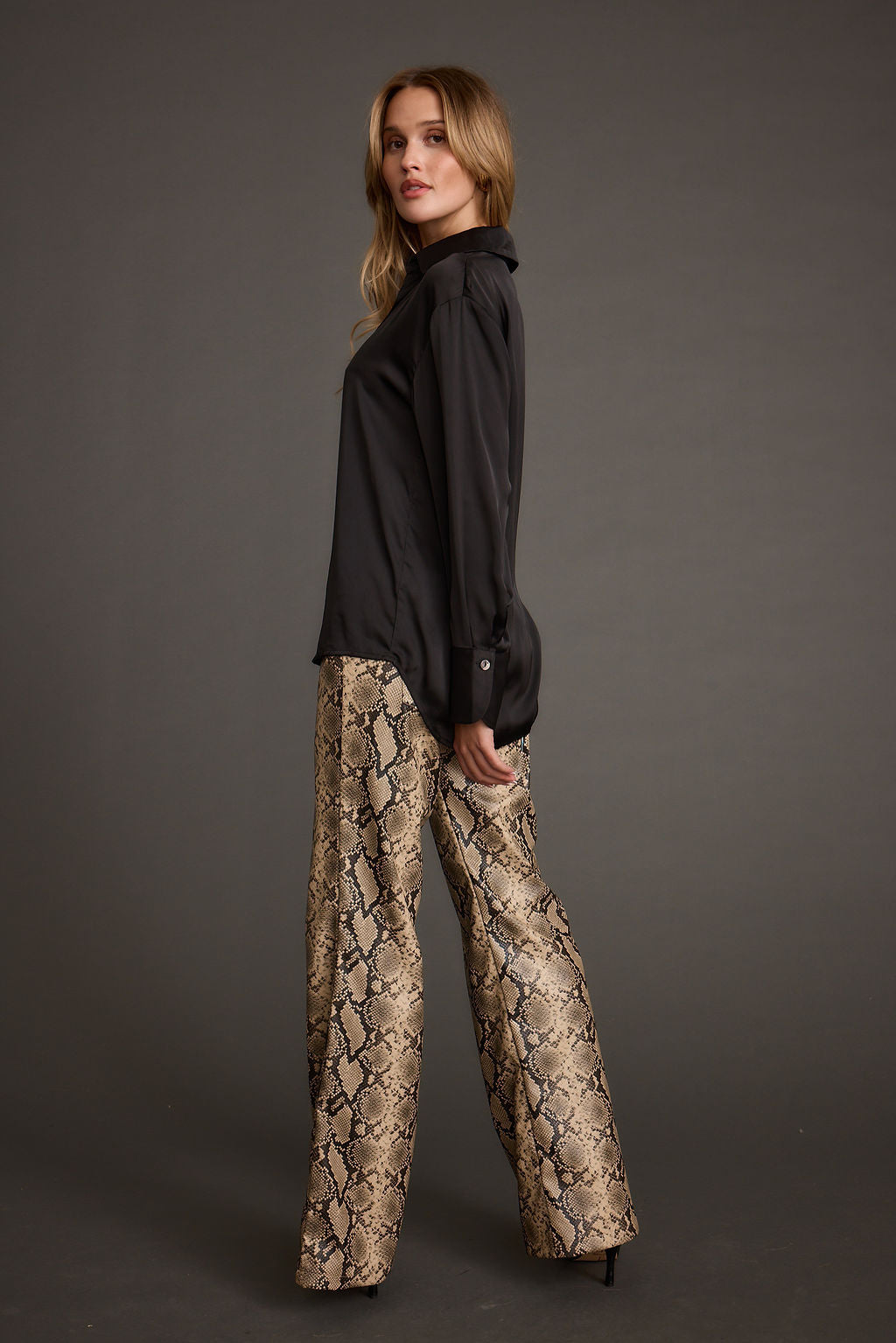 Cash Black Satin Button Down Top