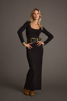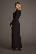 Gemma Black Long Sleeve Ribbed Maxi Dress