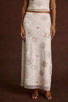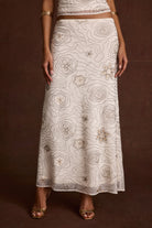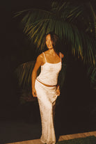 So, it's gonna be forever with the Julia White Beaded Maxi Skirt. The soft sparkle and embroidered design is always perfect for bridal moments and beyond. The beading and sequins catch the light elegantly, making it the perfect set with the Luci White Beaded Tank.