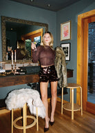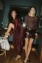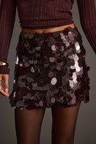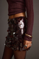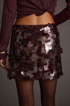 All sparkle, no effort. The Miramar Mulberry Payette Mini Skirt catches the light with its all-over sequins in a deep jewel-tone hue. Pair it with the matching top hue or a soft knit for a look that feels festive but never overdone.
