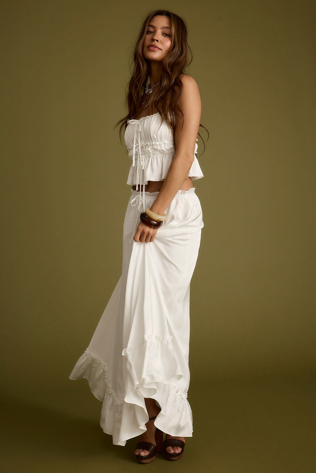 Dahlia White Satin Maxi Skirt