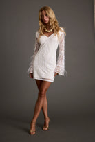 The sheer sleeves, the sequin detailing, the front and back v-neck, phewww, what more could you ask for in a bridal shower dress! The Larisa Sequin Mini Dress is a statement piece in every way, making for the perfect special occasion dress.