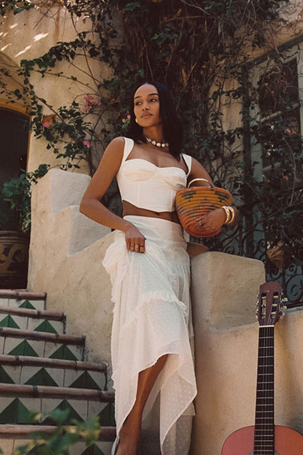 Delicate and dreamy and the Lorelei White Corset Top is our newest closet staple for date night, your next getaway, and everything in between. This cropped cutie features corset detailing and an ultra flattering sweetheart neckline so you can show off your decolletage and accessorize with your favorite statement necklaces. Cute on it’s own or pair with the matching Liana Low Rise Maxi Skirt for a head-to-toe romantic look.