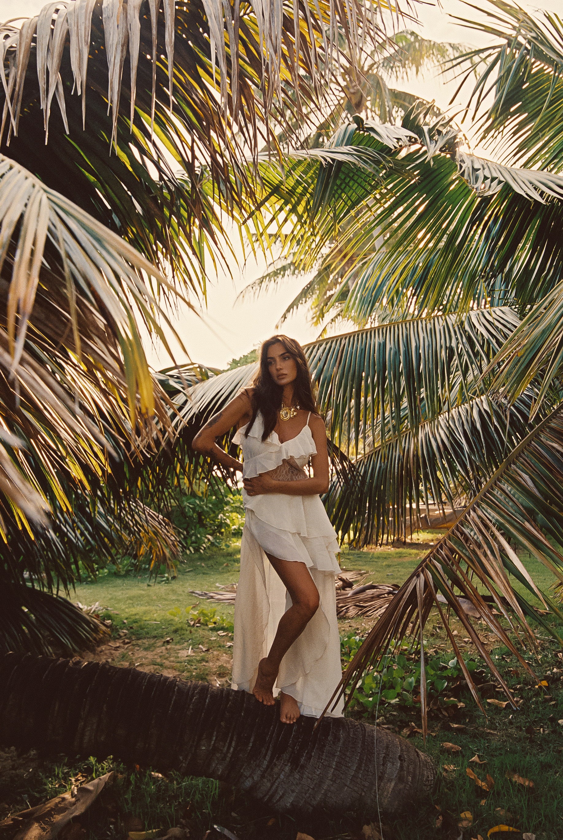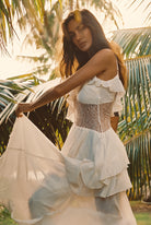 For the island icons and boho-babes, stun in the in the Nyx Ivory Ruffle Maxi Dress. With delicate lace insets, free-spirited ruffles and a flowy maxi silhouette, this beauty is built for the making memories in.