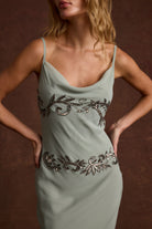 100% that bach in the Amelie Blue Embellished Midi Dress. If you’re dressing for a bridal or bachelorette event and want something that feels formal and delicate this right here is a solid pick. The flowy chiffon fabric and A-line hem against the gunmetal sequin and bead detailing are a pretty balance that'll help you get the best man's number.