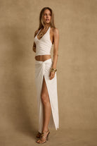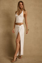 You are jet setting to France and the Toulouse White Maxi Skirt and matching crop top are coming with. In a soft slinky fabrication, this set is great for enjoying that summer breeze with a refreshing cocktail in hand.