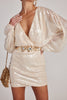 Larisa White Printed Sequin Long Sleeve Dress