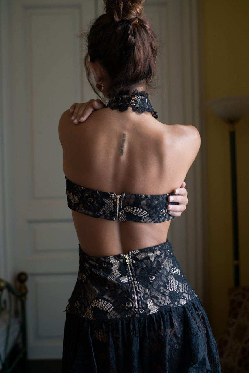 Girls trip means mandatory girls dinners and tons of group pictures. We don't make the rules, we just help you to look your best for them. Introducing the Black Lace Drop Waist Maxi Dress,  and she’s named Princesa for a reason. With a bustier bodice, lacey sheer drop waist skirt with a and high neck detail the Princesa is giving black tie glam.