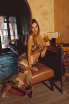 If you're seeing this, it's your sign to buy this dress - the newest color way of the viral Natalia strapless Maxi Dress—now in an olive, rust, and white abstract print with a gorgeous gold detailing. Stop waiting. Add to cart.