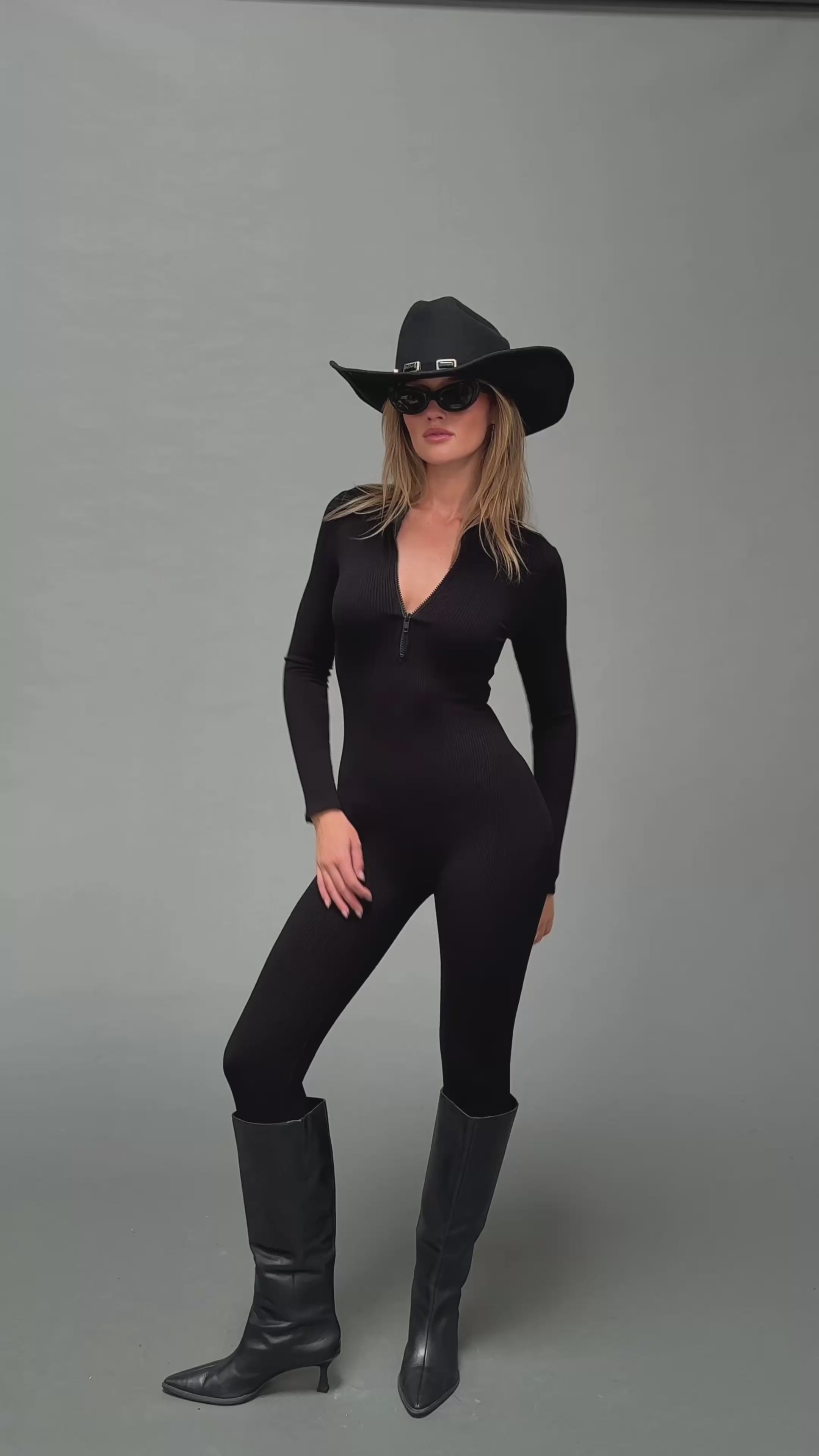 The fitted Nordic Black Ribbed Jumpsuit is the one-and-done outfit you’ll live in. It's your most comfortable and flattering bodysuit designed with a control top for subtle contouring, and the black color keeps it easy to style. It's hard to choose between sneakers, boots, or a jacket since it works with everything.
