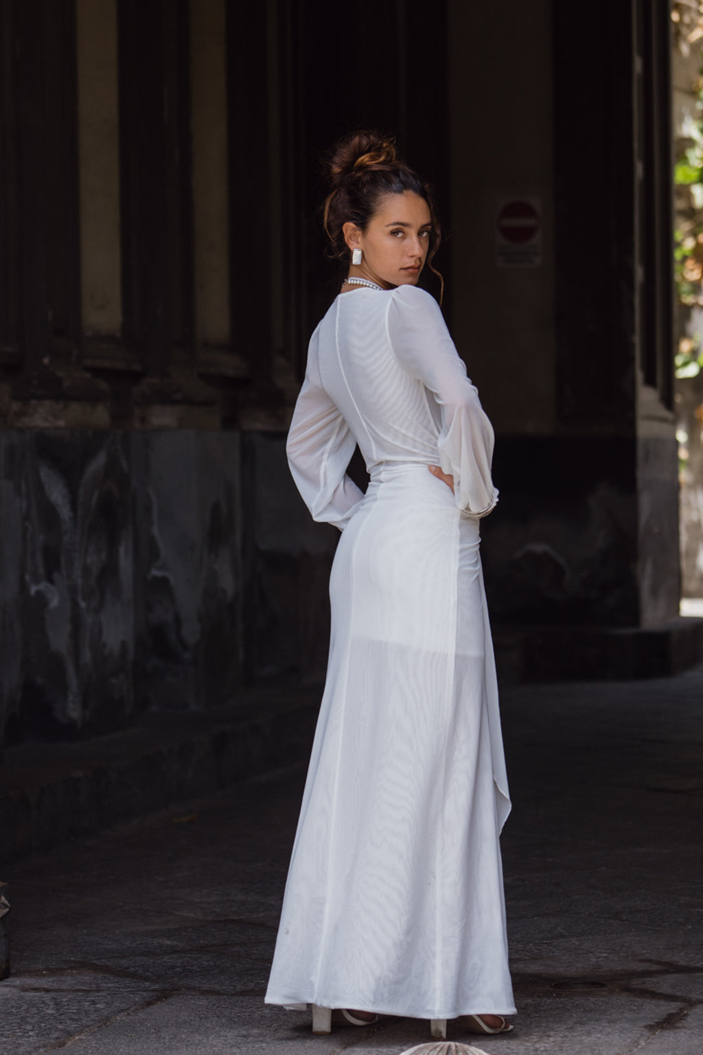 Get the champagne towers ready - you loved the Bella Black Mesh Plunge Maxi Dress so we’ve created a brand new bridal ready color way in WHITE. Made from a flattering mesh material with a plunging neckline and an overskirt at the waist that ties at the hip, the Bella White Maxi Dress is perfectly sexy and elegant. Sheer in just the right places, the Bella Maxi Dress takes our breath away. Raise a glass and pair with your fav heels and jewelry for a show stopping look.