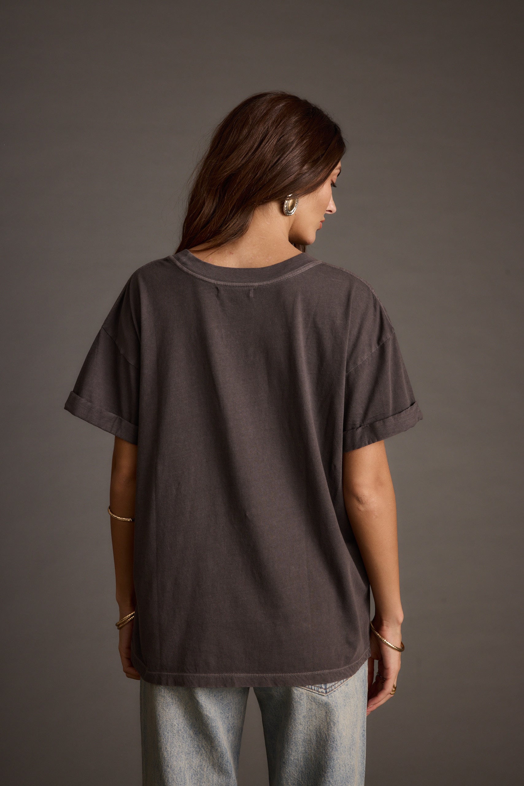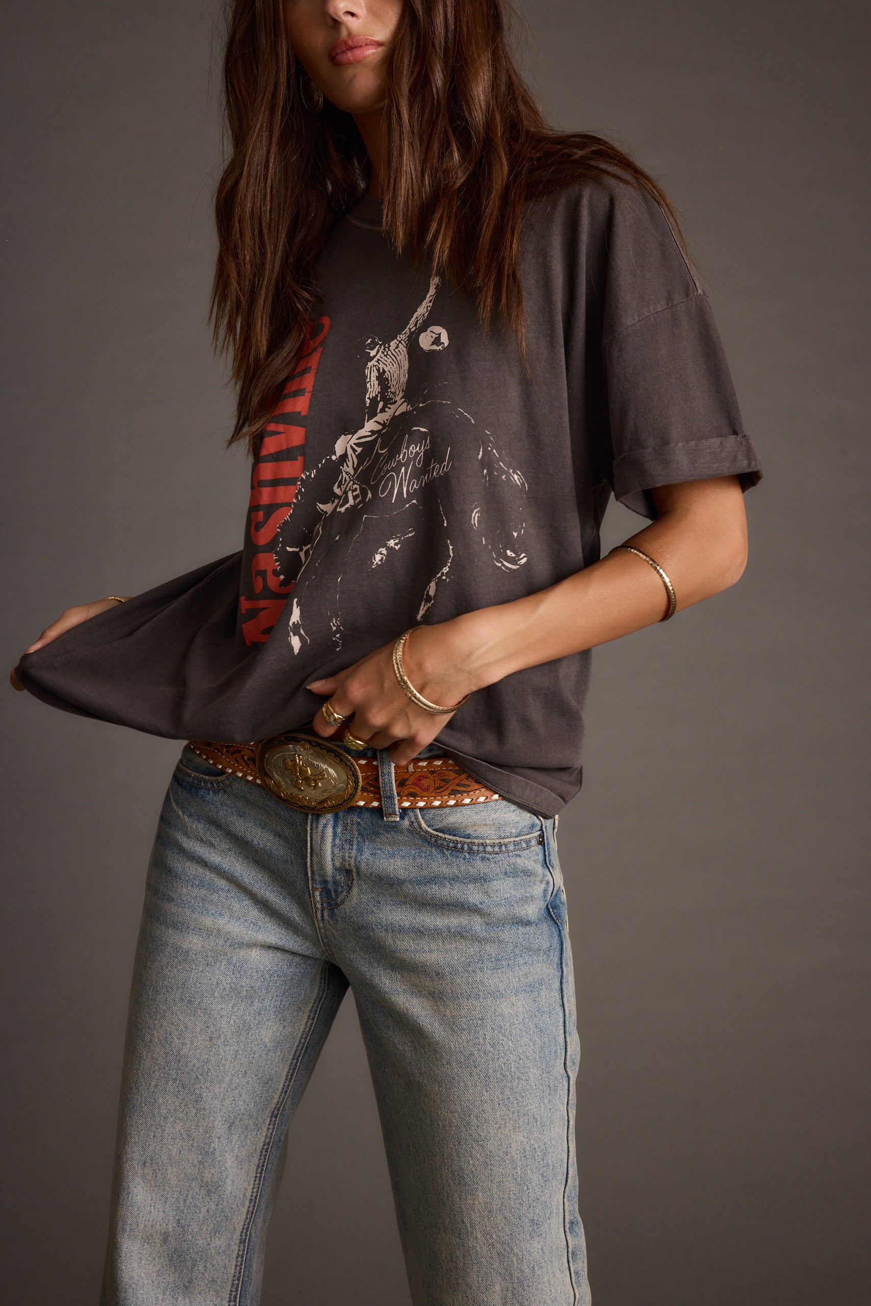 Keep your wardrobe interesting with this not so basic graphic tee. With a relaxed oversized fit, the Callie Charcoal Oversized Graphic Tee features a western inspired Nashville rodeo graphic that looks and feels like a hidden gem from your local vintage store. Perfect for pairing with denim shorts and cowboy boots, the Callie Tee is festival ready and desert-approved.