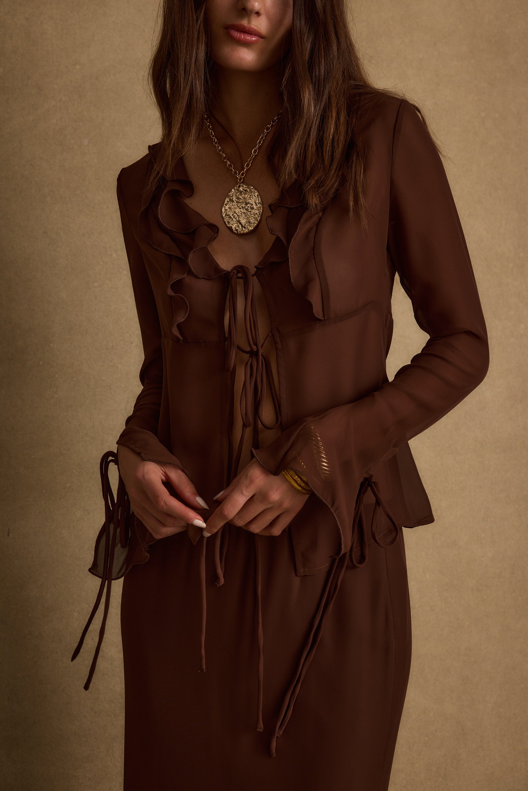 Odette Mocha Mesh Maxi Dress