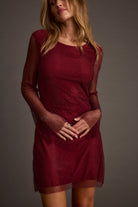 Anna Mulberry Rhinestone Mesh Mini Dress