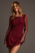 You know that one dress that catches every bit of light in the room? That’s The Anna Mulberry Rhinestone Mesh Mini Dress. Designed in sheer mulberry mesh with all-over rhinestone detail. Perfect for holiday parties, rooftop celebrations, and nights that call for something extra.
