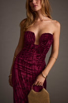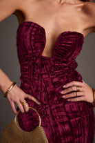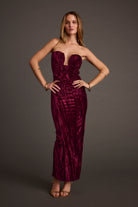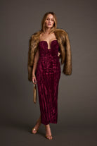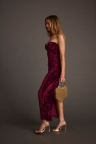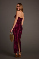 Romantic yet bold, the Jones Mulberry Maxi Dress drapes beautifully in a rich jewel hue made for holiday gatherings. The figure-flattering silhouette and subtle shine make it perfect for dinner parties or formal celebrations.