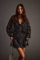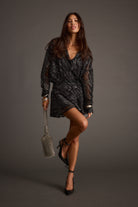 Lennox Black Gunmetal Drop Waist Micro Mini Dress