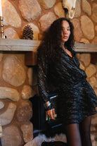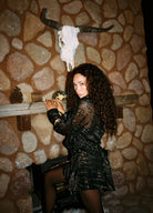 The Lennox Black Gunmetal Drop Waist Micro Mini Dress is your new night-out uniform. Designed with a shimmering gunmetal finish and modern drop-waist silhouette, it moves with you from cocktail hours to holiday parties. Pair it with sheer tights and heels for a bold yet sleek statement.