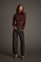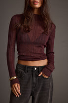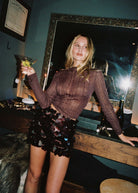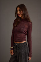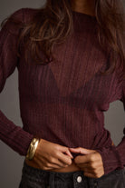 A little shimmer goes a long way. The Rania Mulberry Mock Neck Top is crafted from a semi-sheer metallic knit that catches light in all the right places. Tuck it into leather pants or layer under a blazer for instant night-out energy.
