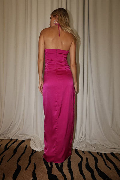 Sirena Fuchsia Cowl Neck Slinky Midi Dress