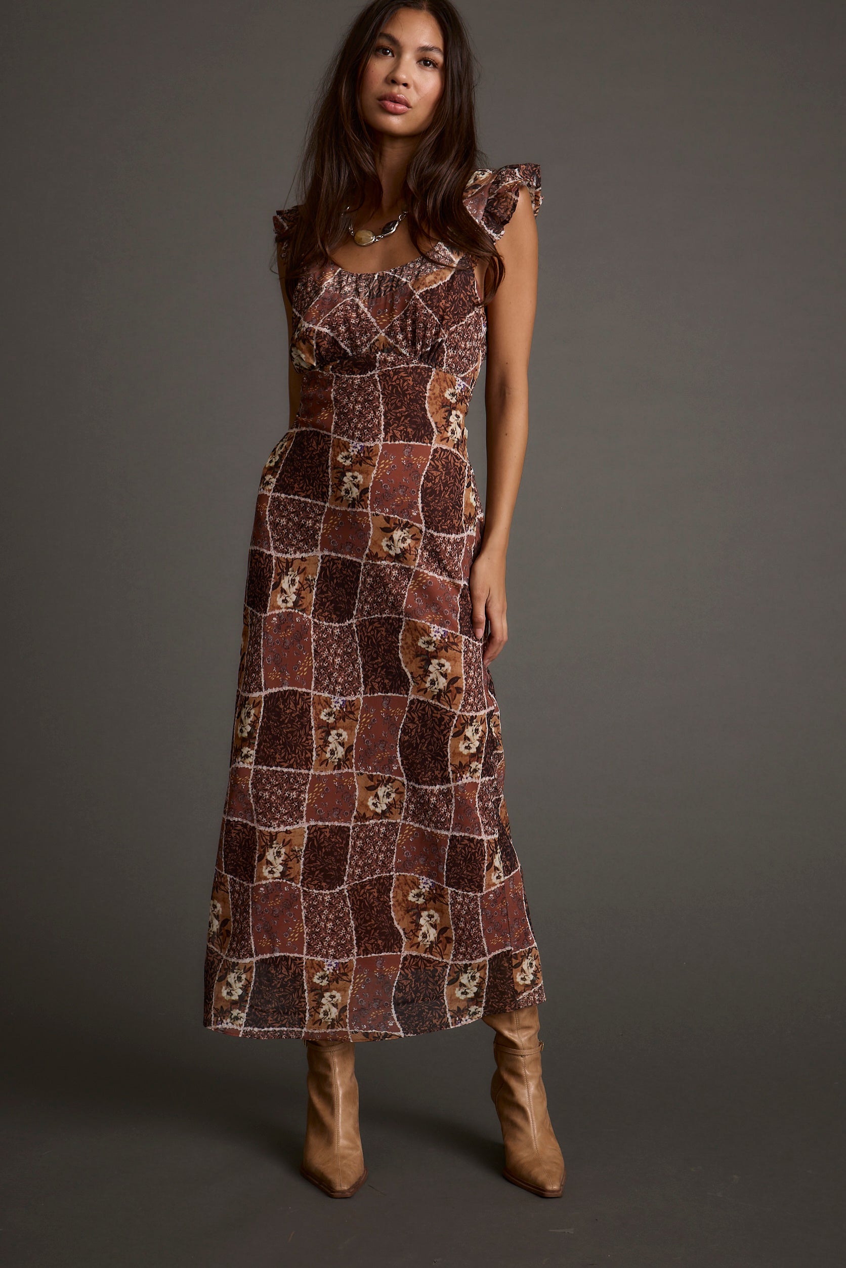 Casanova Brown Floral Maxi Dress