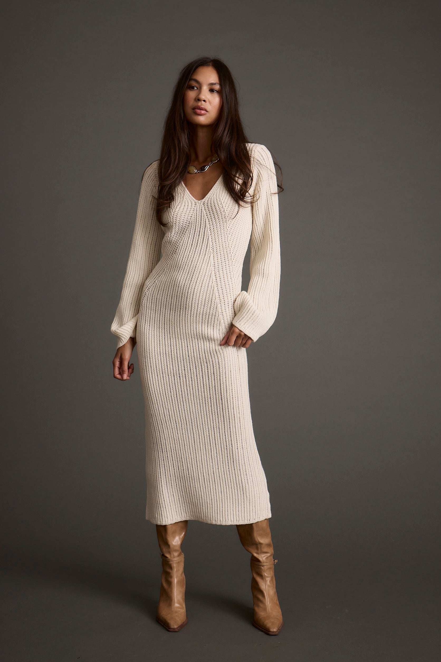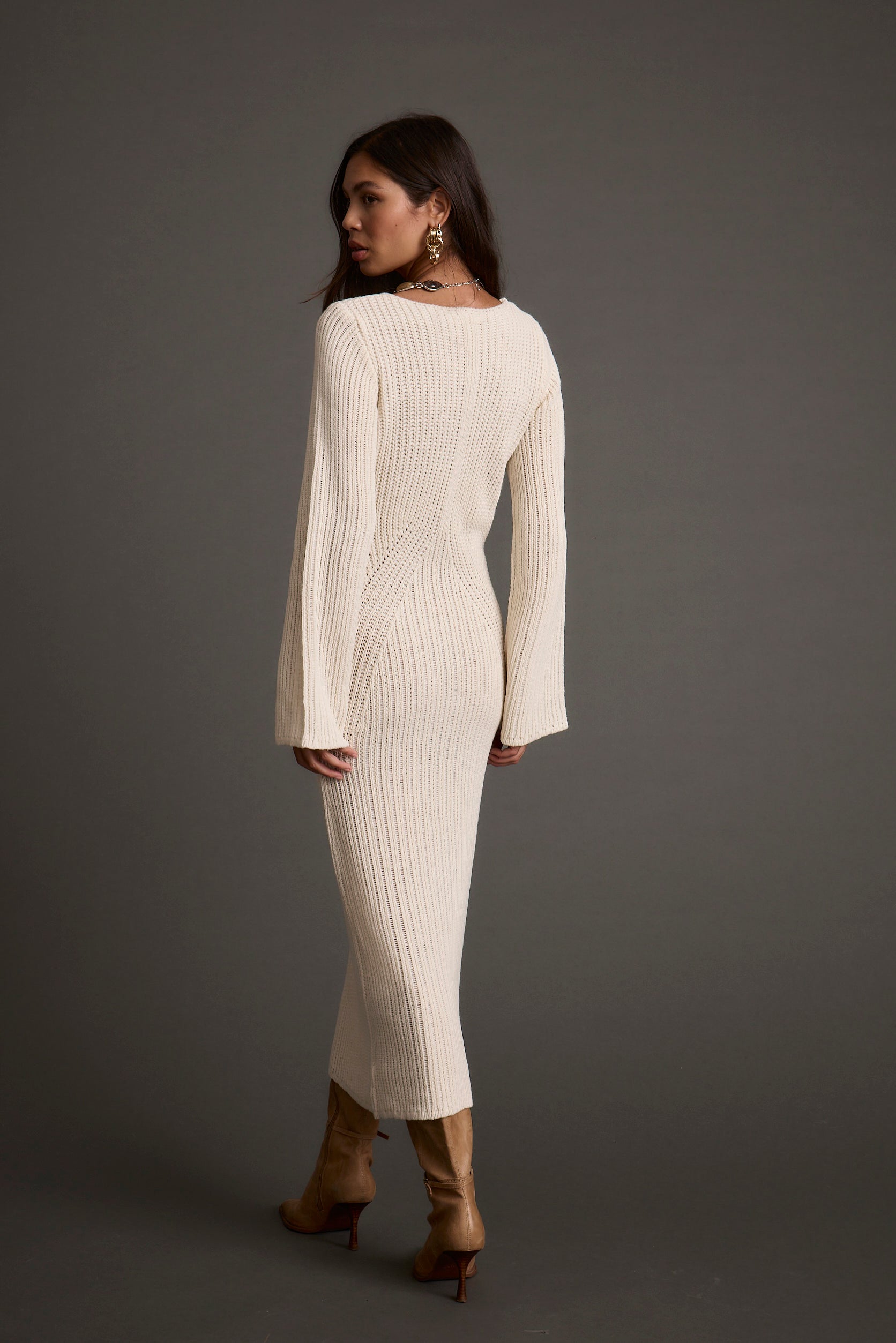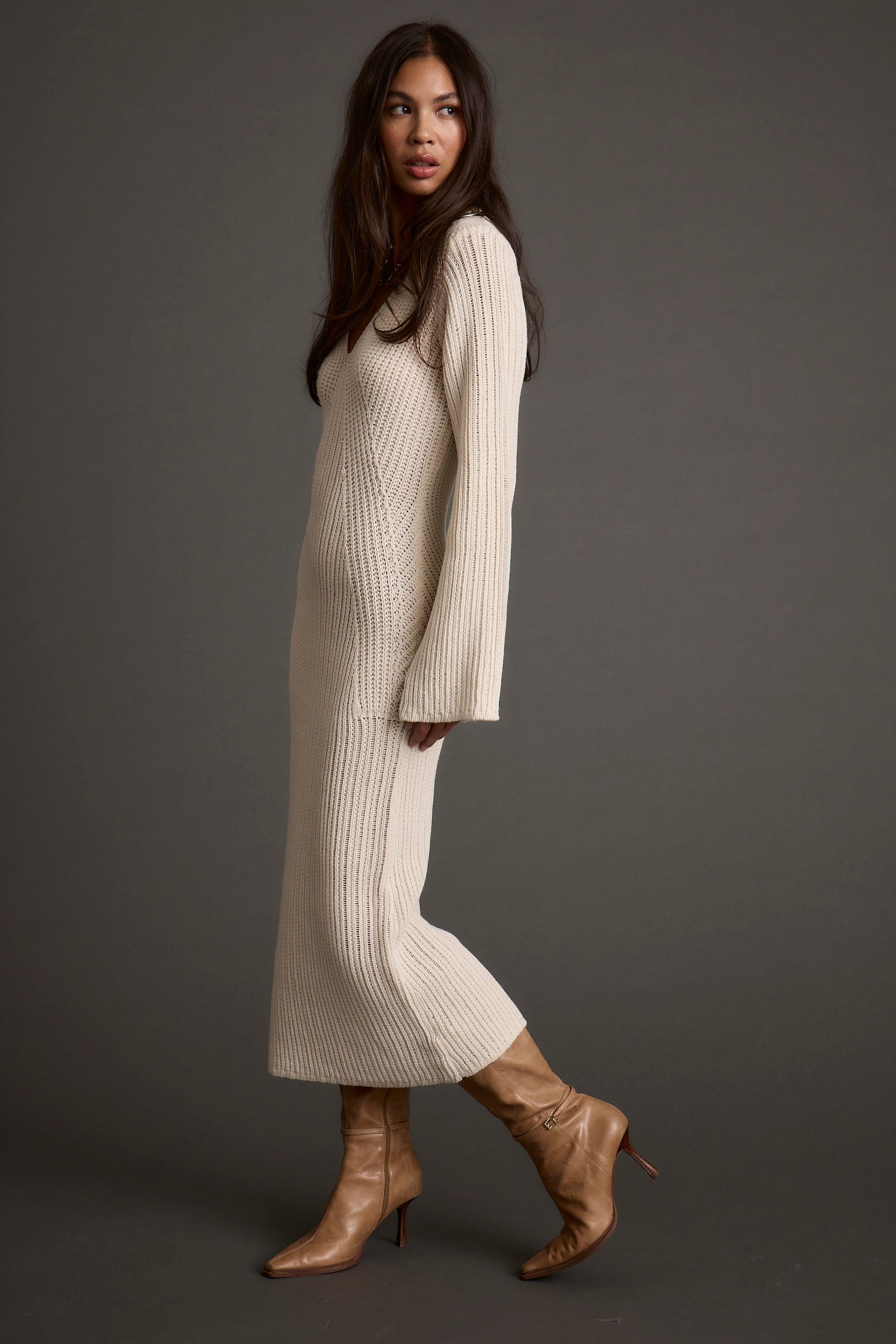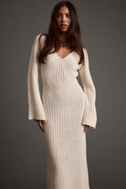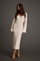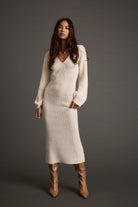 The kind of dress you’ll reach for on repeat. The Nolita Cream Maxi Sweater Dress features a flattering V neck, soft cable knit, and flirty bell sleeves, ideal for elegant fall gatherings or cozy evenings by the fire. Pull on style makes it easy to slip into your new go to seasonal essential.