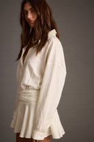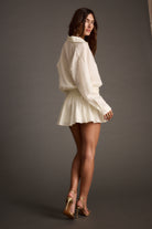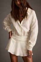An ode to golden hour glow and late night adventures, the Viral Lennox dress is back for more fun. With the same micro mini drop skirt and button up silhouette, now in the textured ivory, this Lennox is flirty, fierce and ready to stun. Keep it casual with sandals or accessorize with a belt and heels for a getaway look that’s giving all day golden hour vibes.