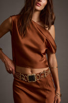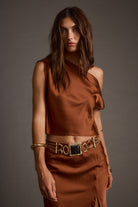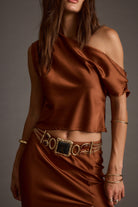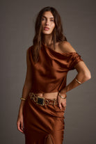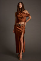 Your statement fall top has entered the villa. The Alaina Cinnamon Top features an asymmetrical one-shoulder neckline in luxe satin finish. Everything’s better together—the Alaina Cinnamon Top pairs perfectly with its matching maxi skirt.