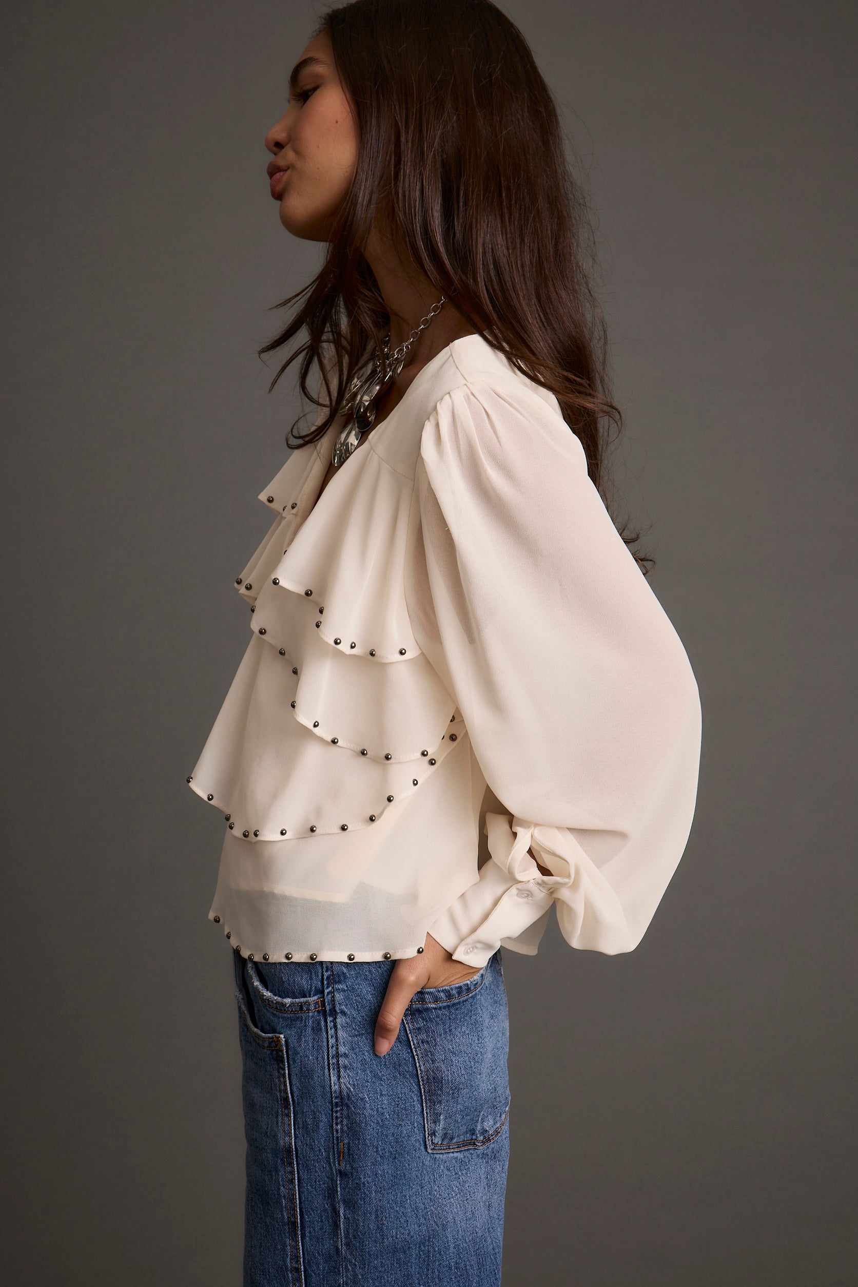 Ruffles, studs, and all the little details that make you look like you have it all together—even if your calendar says otherwise. The Alyssa Blouse brings a boho feel with front ruffles and hand-sewn grommet details, finished with detailed button sleeves. Pair it with your favorite denim or a flowy skirt.