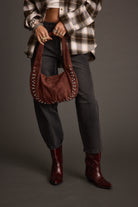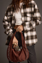 The fashion equivalent of a double shot latte. Meet your new everyday fall essential. The Emery is the bag that does it all. With silver stud accents and rich mocha suede with a hint of burgundy, the Emery Shoulder Bag serves boho energy while holding everything from your lipgloss to your film camera.