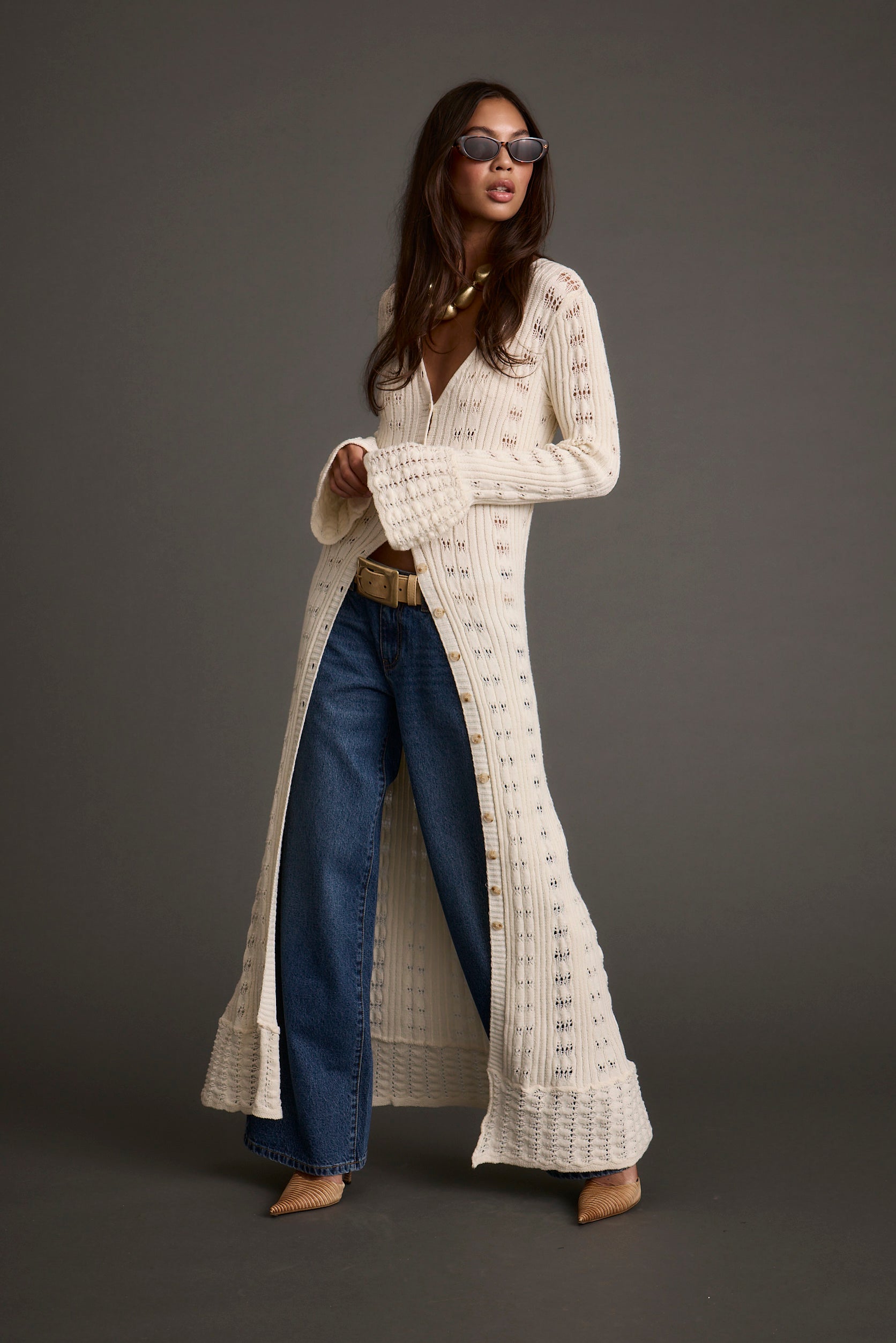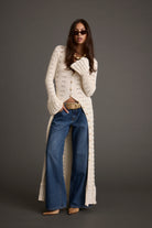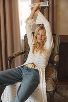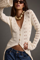 Serving coffee run cuteness with zero effort. The Nicoletta Cream Knit Longline Top features a sweet flutter sleeve and a soft, feminine knit you can wear open over a cami or buttoned up for a flirty, fall-ready vibe.