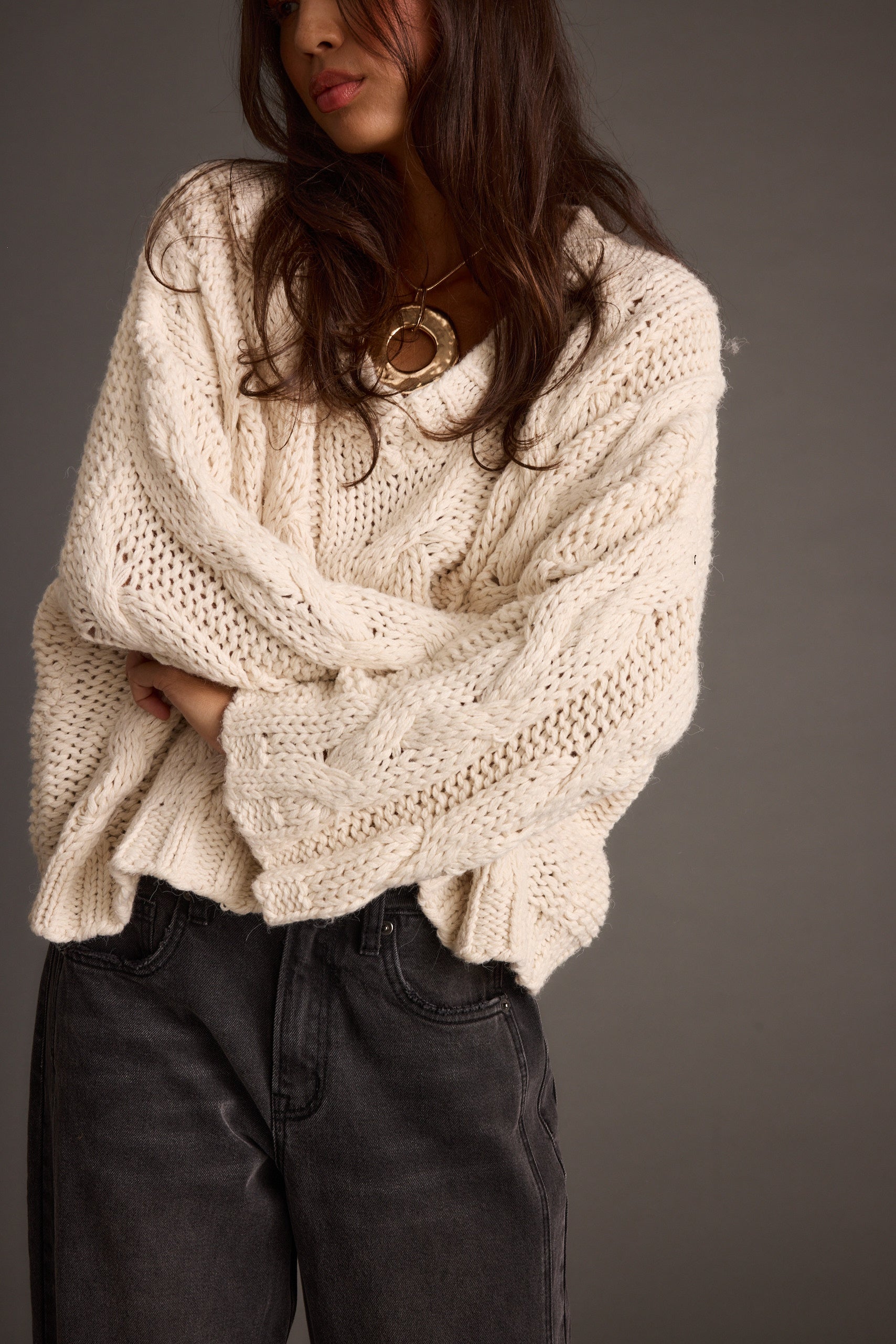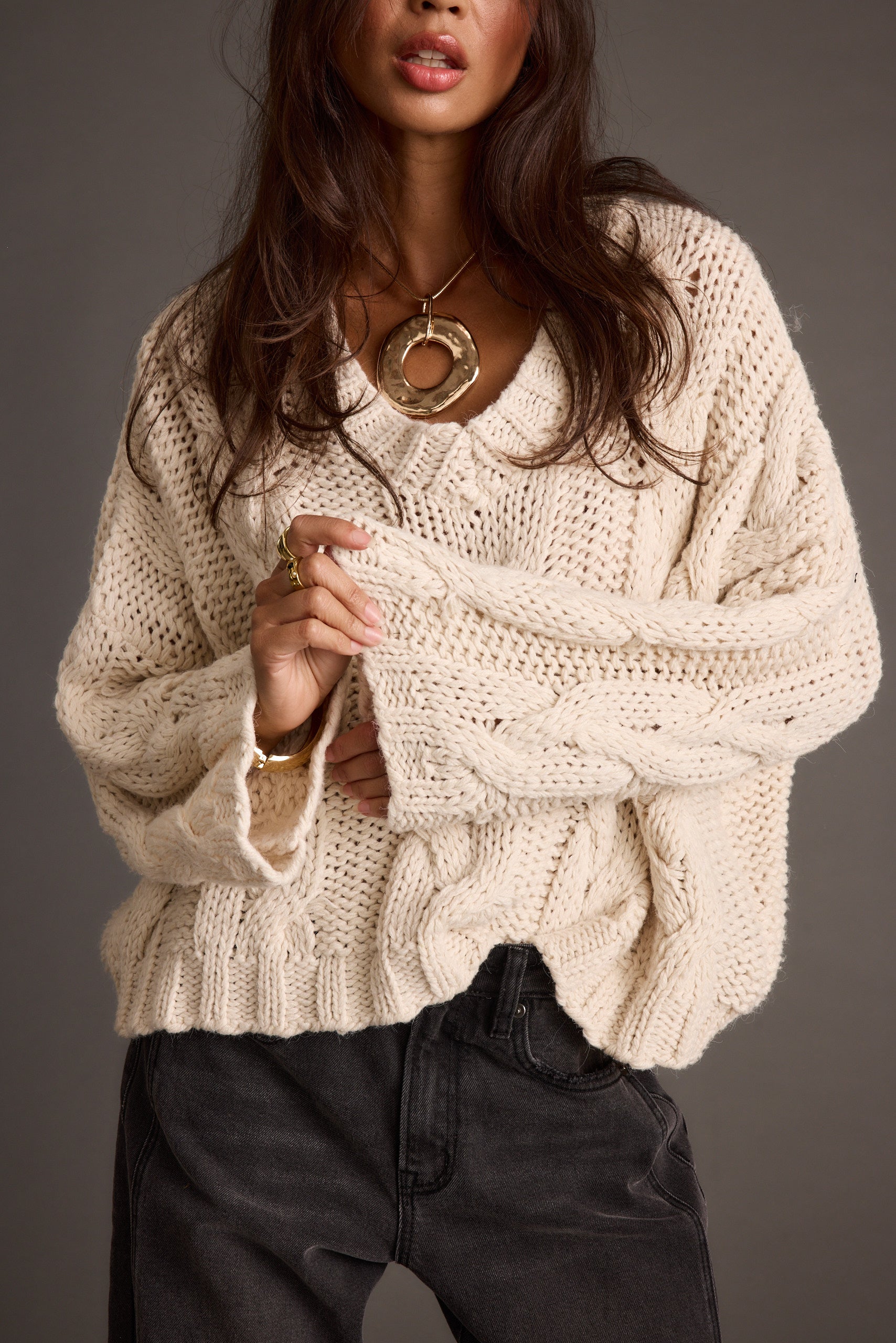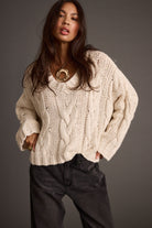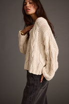 Soft, textured, and timeless — The Remi Ivory Cable Knit Sweater is a classic you'll reach for again and again. The chunky knit and relaxed fit make it the perfect layering piece from morning coffee runs to fireside nights.