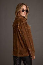 Rustic Pines Brown Suede Button Down Top