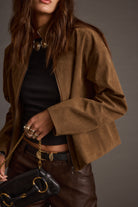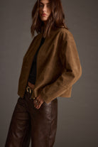 The Sienna Brown Vegan Suede Jacket is your new season staple. Smooth vegan suede, sleek seam detailing, and functional pockets make it easy to throw on over everything from dresses to denim.