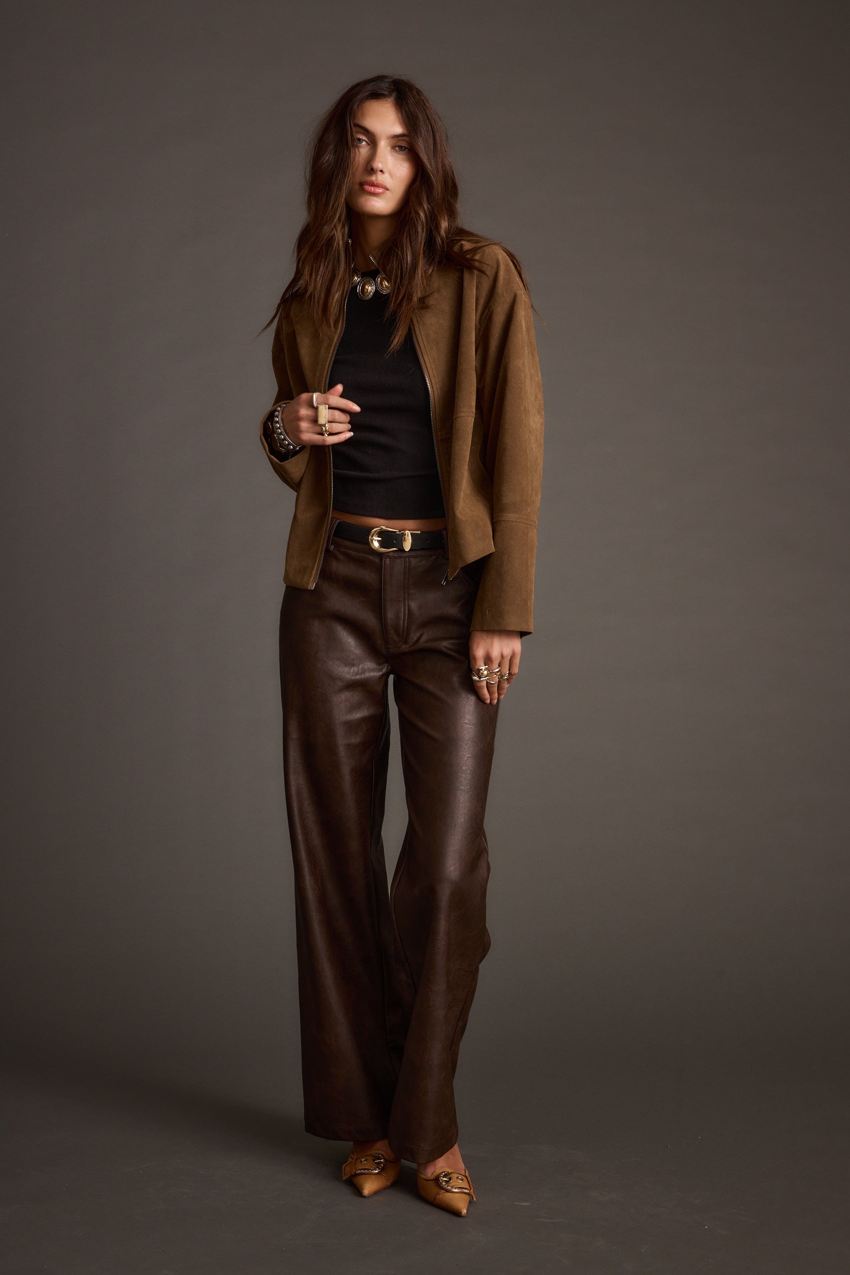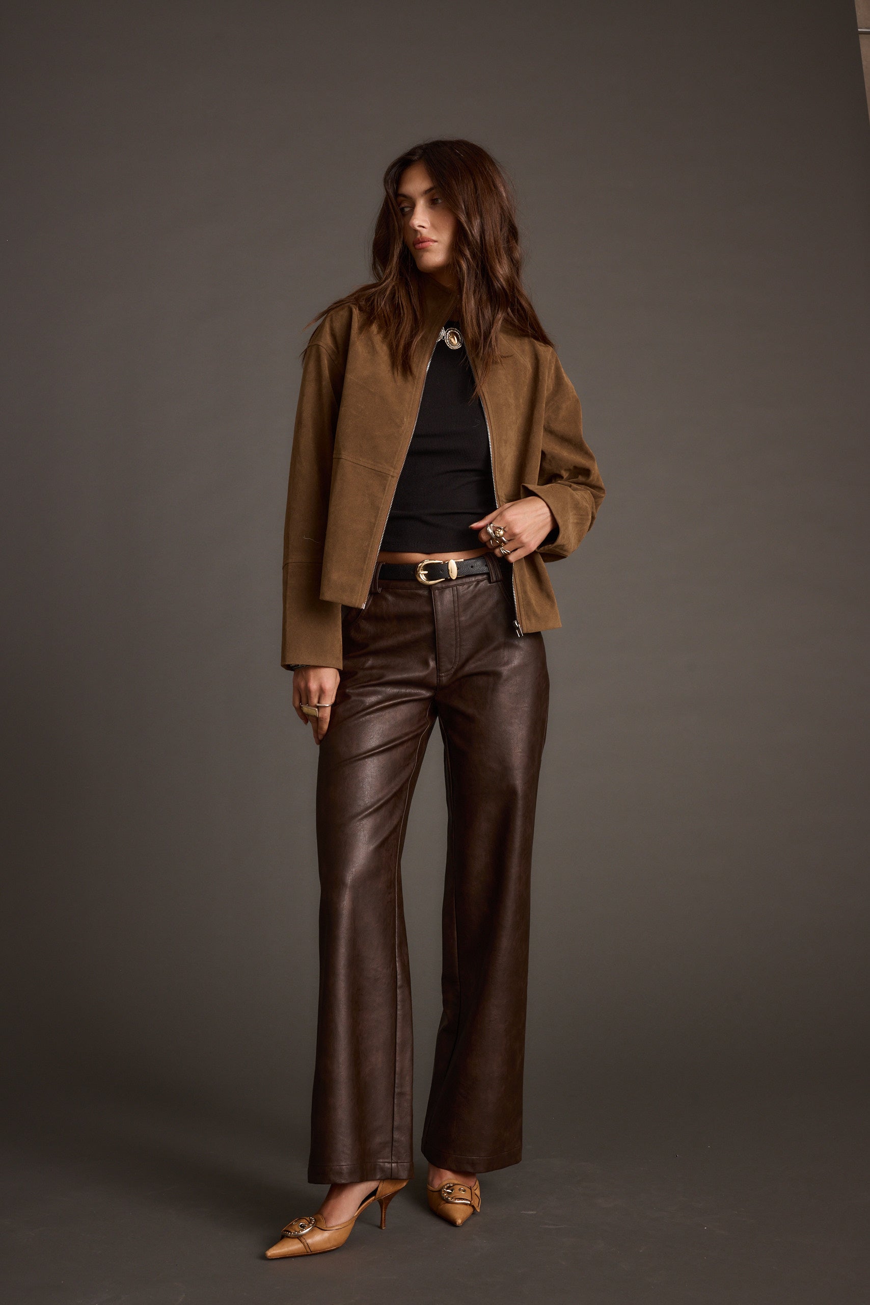 Complete the look with the Kennedy Espresso Vegan Leather Pants.