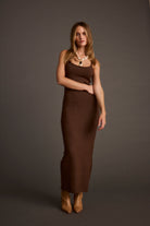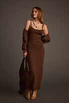 The Teresa Mocha Sweater Midi Dress is the definition of cozy meets polished. With a body-skimming fit and soft ribbed texture, it’s perfect for everyday wear or dressed-up dinners. Pair it with the matching cardigan for the ultimate set.