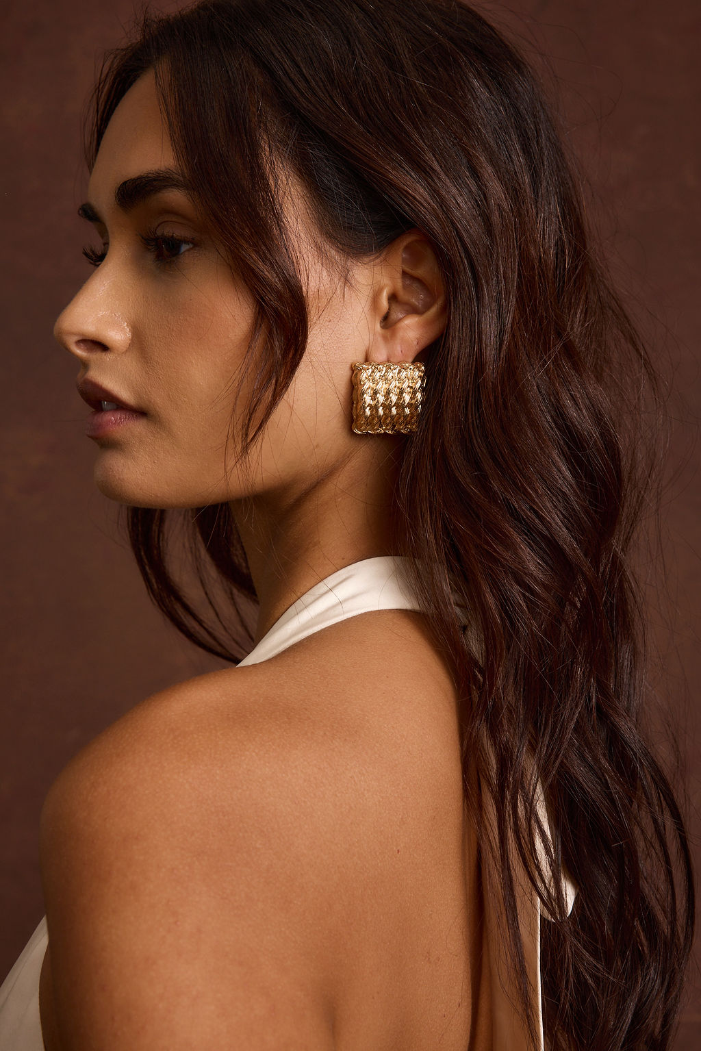 She knows exactly what she's doing in the Calalia gold earrings. The textured gold goes with everything and anything, but you already know that. Dress up a black tailored fit for your sunset dinner or throw them on with a classic top and denim for relaxed vacation vibes.