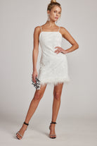 Looking for your perfect bridal-era dress? Say less, presenting the Priscilla Sequin Mini Dress with Feather Trim - your perfect match. In a comfortable stretch sequin and velvet fabric that will fit tailored to your desires, this versatile dress is your ultimate go-to dress. From the engagement party to the bridal shower, and all the way to the bachelorette, it’s got you covered.