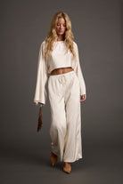 Your fave set, now in her bridal era. Tribe tested and approved, the Clear Breeze Pants, now comes in creamy satin, perfect for slipping into your suitcase for the bach, the honeymoon, or any "future MRS" moment. Pair with the matching Clear Breeze Satin Top for a bach-to-honeymoon look that says “I do... to looking this good.”