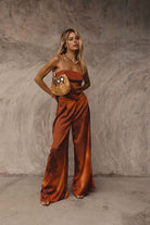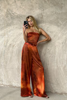 Made for chasing sunsets and sipping rosé, the Kira Sunset Ombre Set is your golden hour glow in outfit form. Inspired by the best selling Kira Pants, the Kira Sunset Pants feature a flowy, wide leg silhouette and statement golden hour orange, red and yellow Ombre because our best memories begin when the sun goes down. Pair with the matching Kira Sunset Ombre top and your escape starts here.