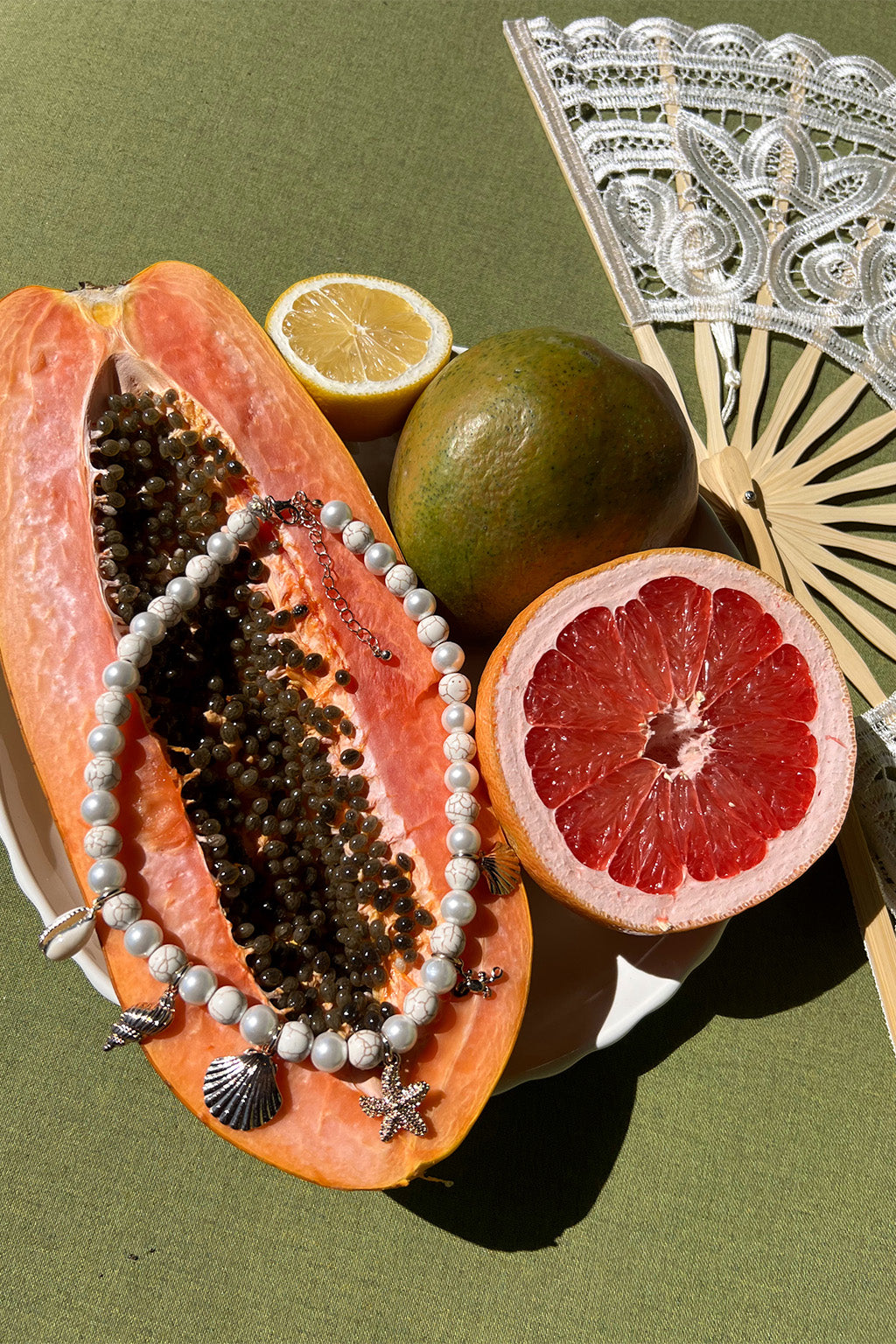 The Cove Shell Choker Necklace is your ticket to effortless coastal vibes. With its delicate shells and pearl choker design, it’s giving barefoot walks on the beach and sunset cocktails by the sea. Pair it with flowy fabrics and a touch of mystery—this necklace turns every 'fit into a story.