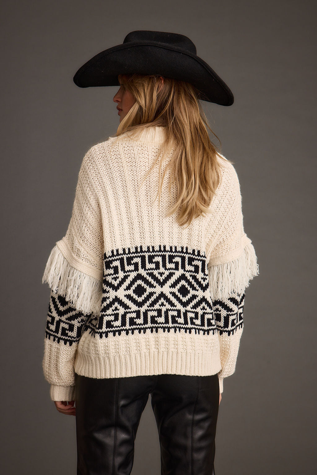 Bozeman Cream Printed Fringe Sweater