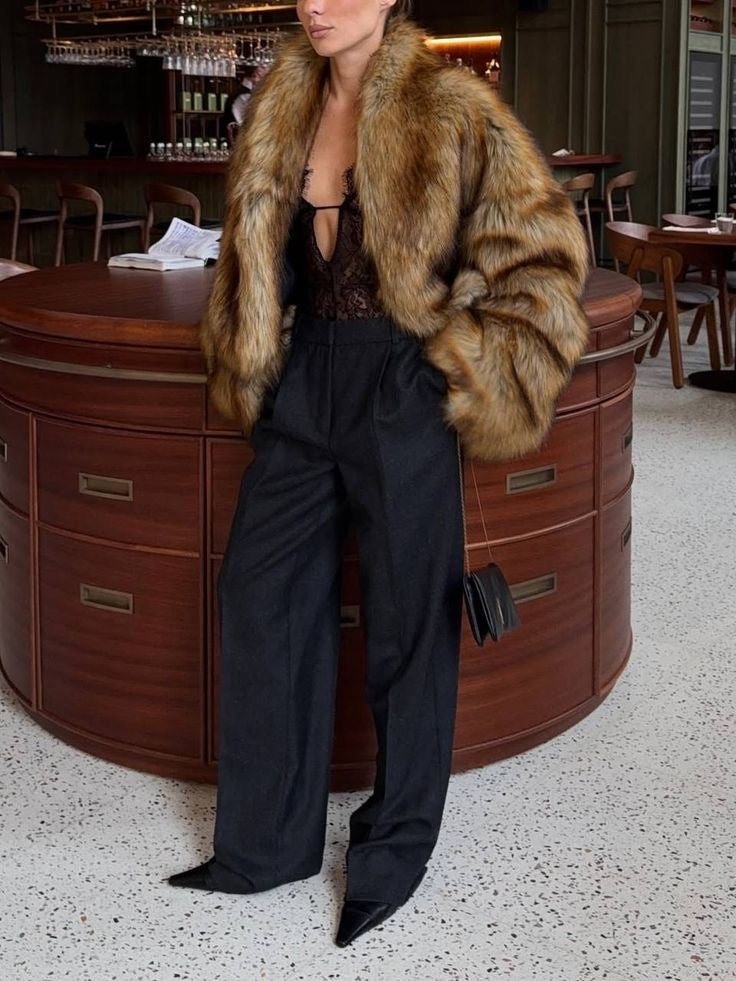 Misty Brown Faux Fur Coat