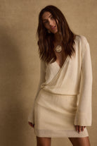 Soft girl summer is here. The Alma Cream Knit Mini Dress wraps you in sweet, buttery softness perfect for cozy nights and sunset dinners. Effortlessly unforgettable, the Alma has a flattering v-neckline and cinched waist, perfect for transitioning from daytime coffee dates to evening drinks with the girls.