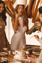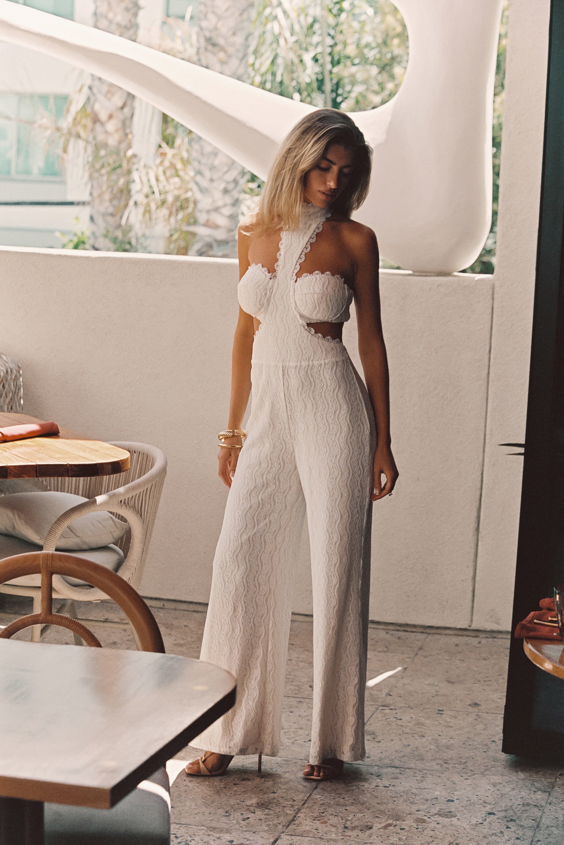 You made the dress go viral, now meet her cooler cousin - the Princesa White Lace Jumpsuit. Same energy, new silhouette, the Princesa White Lace Jumpsuit with the same high neck and sexy side cut-out details is dancefloor ready and bride tribe approved.