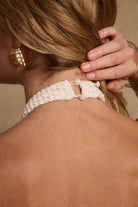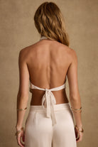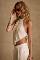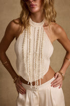 Daya Ivory Shell Embellished Halter Top
