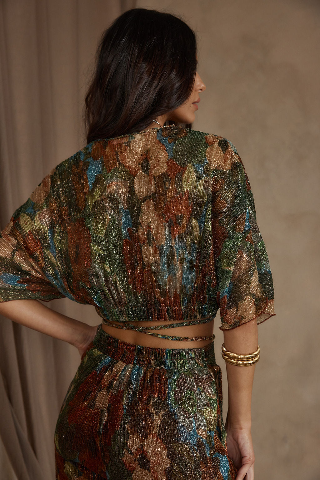 Kaia Multicolor Metallic Floral Crop Top