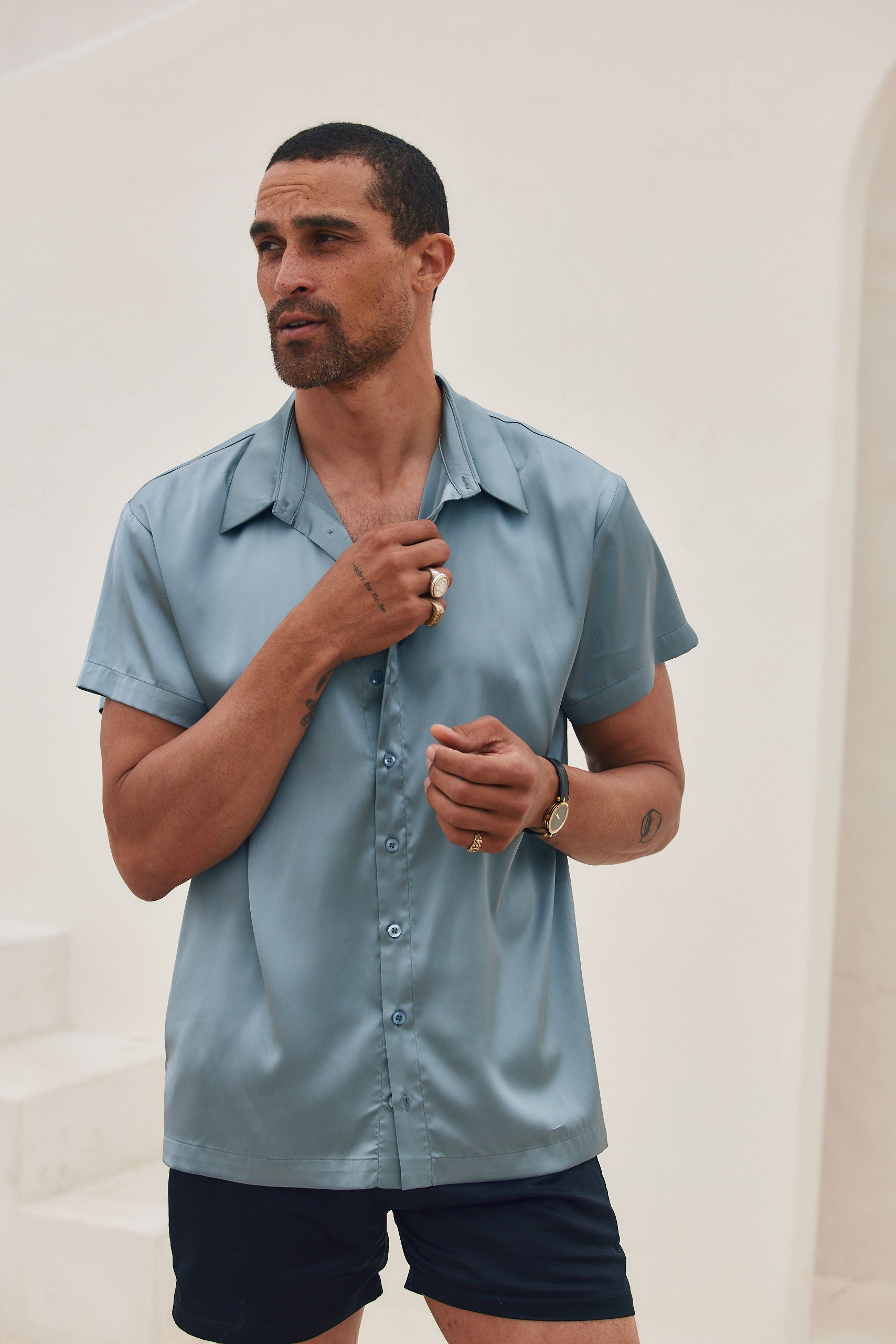Vaughn Blue Satin Camp Shirt