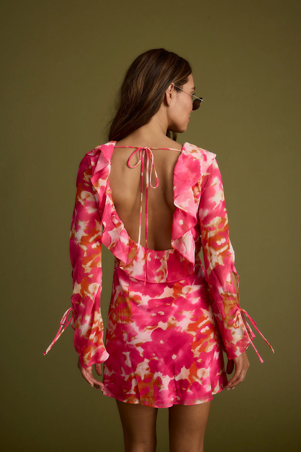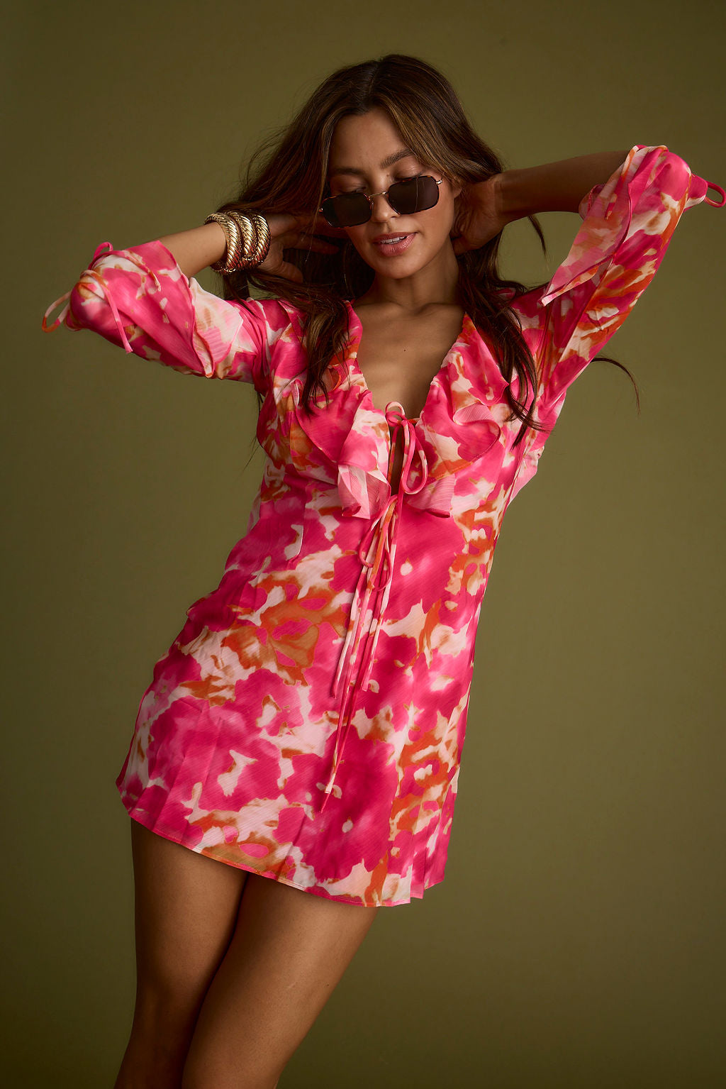 Sydney Hot Pink Long Sleeve Ruffle Dress